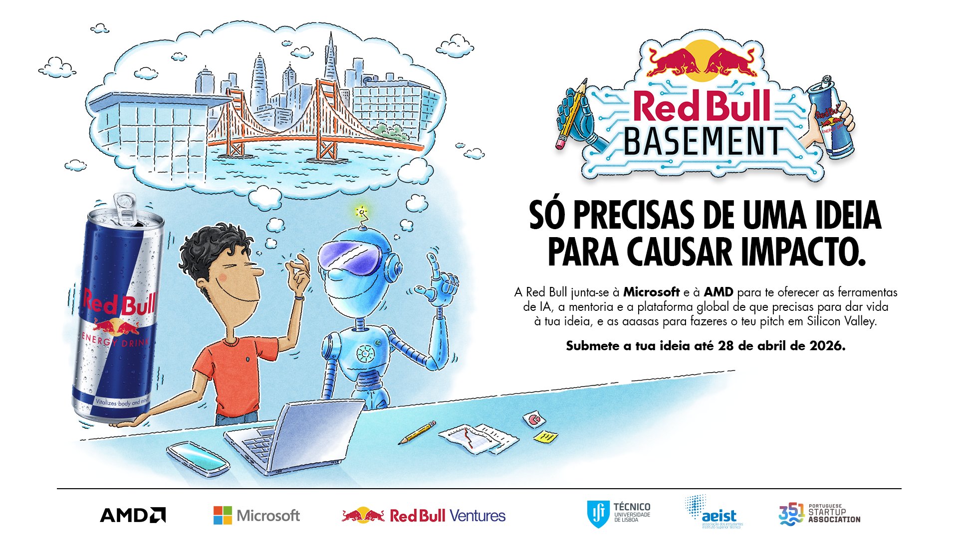 With the support of Microsoft, AMD, and Red Bull Ventures 💡, the best teams move on to the National Final — and the winner represents Portugal at the Global Final in San Francisco and Silicon Valley 🌍